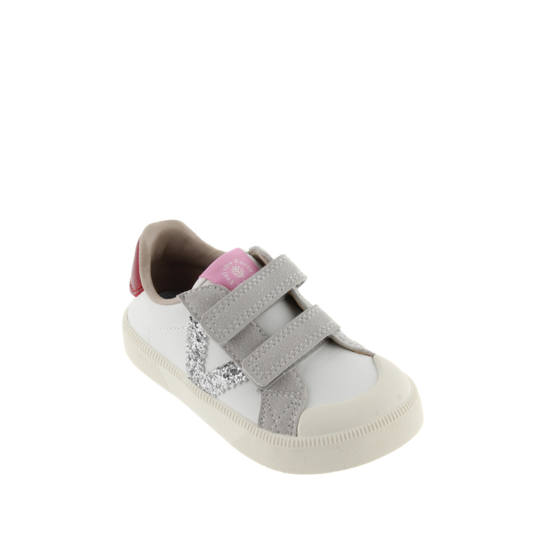 Com estilo descontraído e detalhes modernos, os ténis barefoot Oliver da Victoria oferecem liberdade e conforto. Fabricados em material efeito pele, apresentam a icónica lateral em V com glitter prateado ou efeito camurça, e uma peça traseira com cor em destaque.