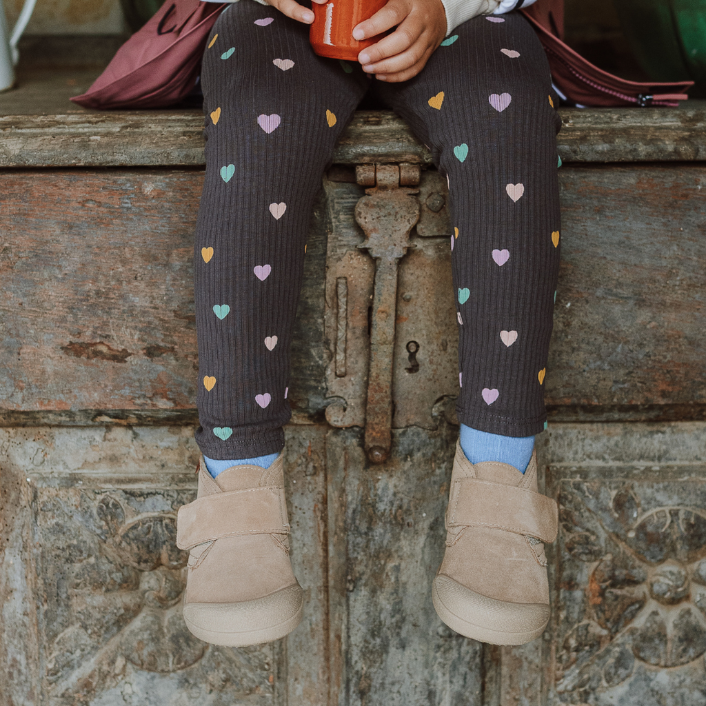 O calçado barefoot foi criado para respeitar o movimento natural dos pés das crianças e adultos, e cada detalhe tem um propósito para garantir conforto, saúde e liberdade. A sola fina e flexível permite que o pé sinta o chão e trabalhe os músculos, algo essencial para o equilíbrio e para o desenvolvimento natural. A biqueira é sempre larga para que os dedos tenham espaço para se mexerem livremente, sem serem apertados ou comprimidos, o que ajuda a melhorar a postura e a coordenação. Não há elevação no calcanhar, o que mantém o pé numa posição neutra, evita alterações na marcha e promove uma postura correta. A ausência de reforços rígidos permite que o pé ganhe força em vez de ficar confinado num suporte artificial. O ajuste ao tornozelo é sempre pensado para que o sapato fique firme, sem apertar nem “chinelar”. Em suma, cada característica é pensada para oferecer o máximo em liberdade para que os pés possam desenvolver-se como se estivessem descalços.