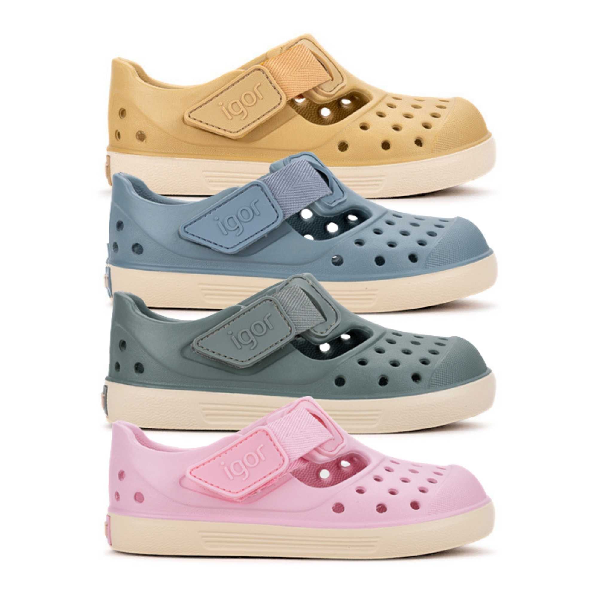 As Sandálias Barefoot Malibu da Igor são uma opção prática para dias quentes, pensada para criança e para rotinas com água. Feitas em EVA super leve e com design bicolor, têm uma sensação “extra light” no pé, o que ajuda quando os miúdos passam o dia a entrar e sair da praia, piscina ou balneário.