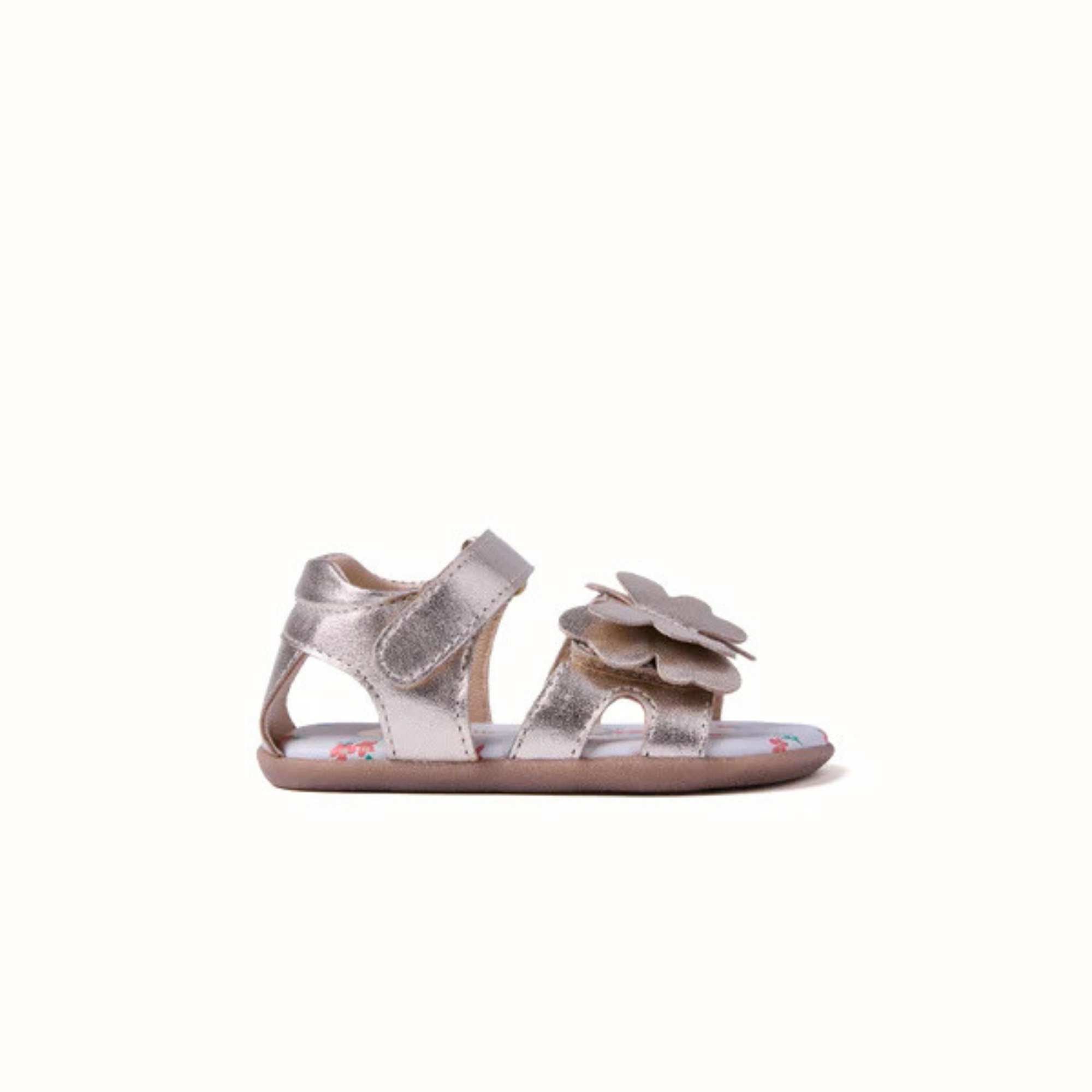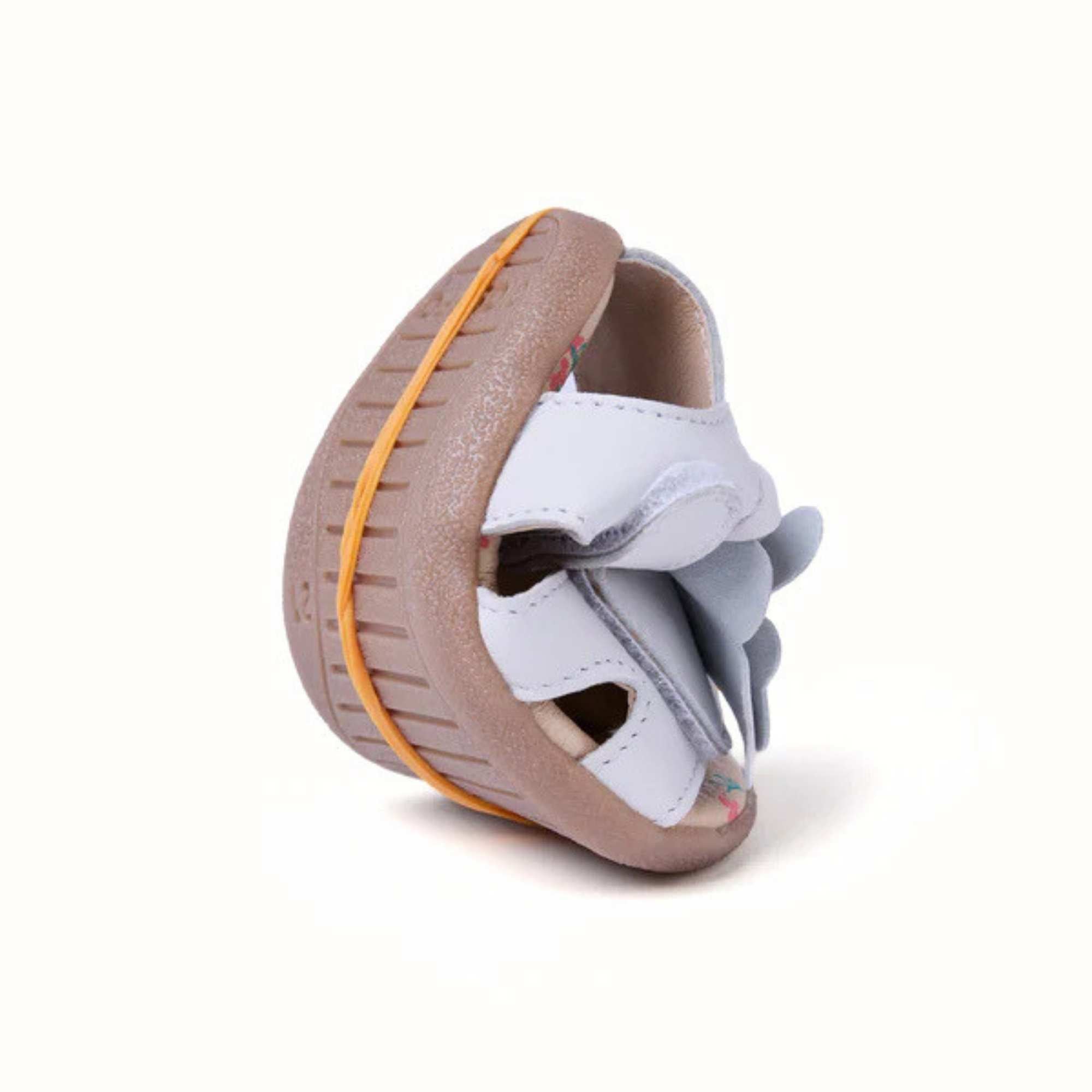 A sola em TPR é plana e flexível, pensada para acompanhar a mobilidade do pé e permitir maior perceção do piso. Numa sandália barefoot, a sola mais fina ajuda a criança a sentir o chão e a ajustar a passada, promovendo controlo e equilíbrio. A sola estampada é um detalhe estético, mantendo o foco numa estrutura funcional para uso diário.