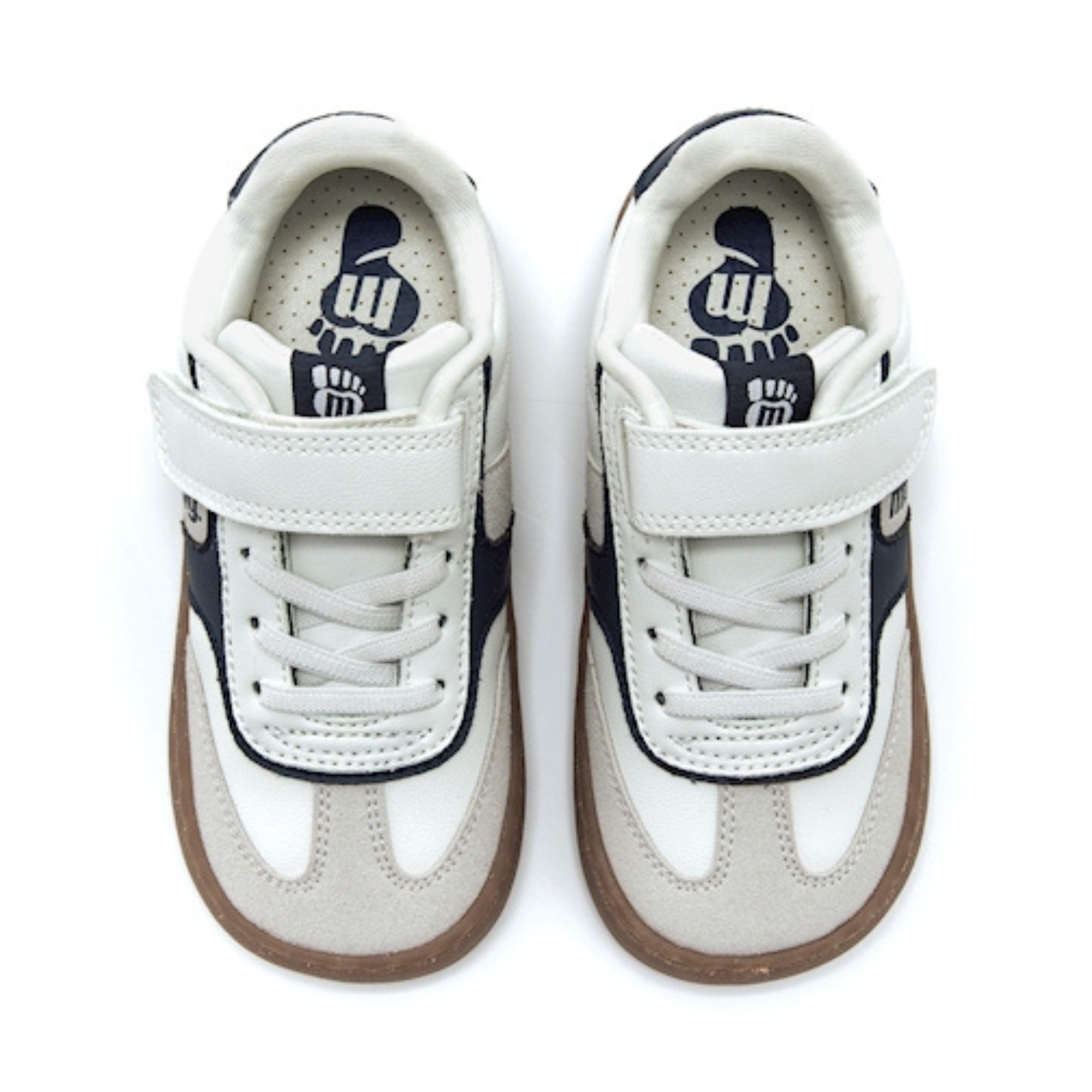 Sim, este modelo foi pensado para marcha já adquirida, com um estilo casual desportivo que funciona bem para escola e rotinas diárias. A construção barefoot, com biqueira larga e elementos flexíveis, favorece liberdade de movimento em atividades como andar, correr e brincar. O ajuste com fecho adesivo e atacadores ajuda a manter o ténis bem assente durante o dia. O mais importante é garantir o tamanho correto e um ajuste confortável no peito do pé.